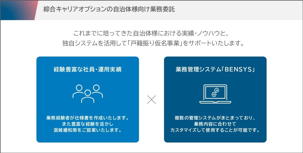 「働く」に関する社会課題をビジネスで解決するキャムコムグループの株式会社綜合キャリアオプション(以下綜合キャリアオプション、本社:東京都港区、代表取締役:神保紀秀・大泉高太)は、2025年5月に施行された戸籍法(昭和22年法律第224号)の一部改正を含む「行政手続における特定の個人を識別するための番号の利用等に関する法律等の一部を改正する法律」(令和5年法律第48号)により追加された戸籍への振り仮名記載に伴う業務を、2025年12月末までに合計11自治体(受託7件、協業4件)で履行したことをお知らせします。